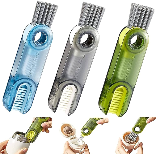 Nuestro cepillo 3 en 1 está diseñado para limpiar botellas, vasos y recipientes de diferentes tamaños y formas, ofreciéndote versatilidad y funcionalidad en tus tareas de limpieza.