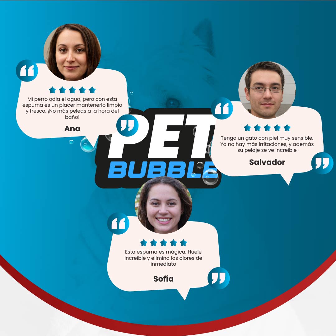 Tu mascota es parte de la familia, y sabemos que te preocupas por su bienestar. Con PetBubble, mantenerla limpia y feliz es más fácil que nunca. Su fórmula suave elimina la suciedad y los olores sin causar irritación, permitiendo que disfrutes de más tiempo de calidad con tu peludo amigo.