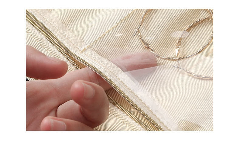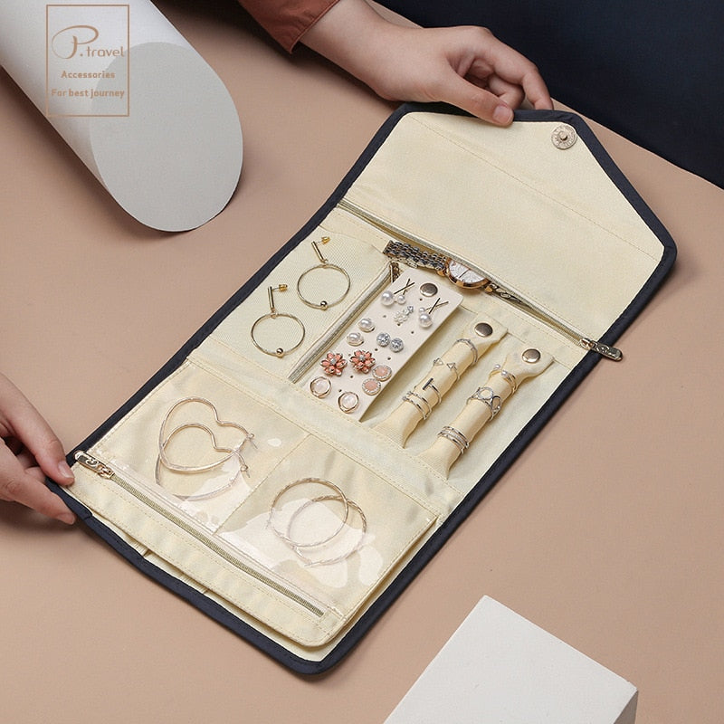 🔺 CALIDAD: 6 áreas de almacenamiento que incluyen 3 cremalleras para un almacenamiento perfecto de anillos, collares, pendientes, horquillas, broches y relojes.