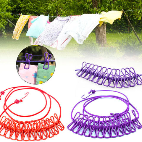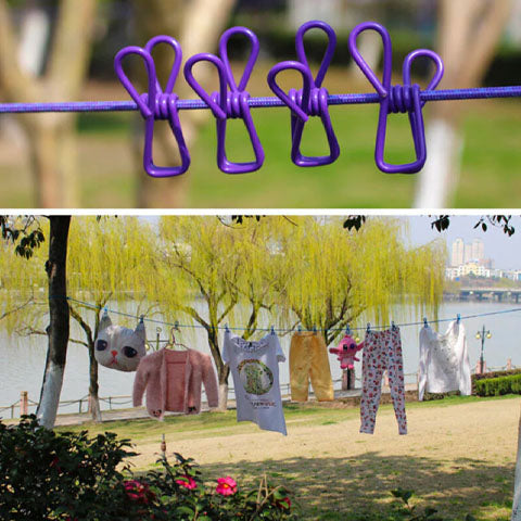 La cuerda para secar telas está hecha de múltiples bandas de goma elásticas con buena tenacidad y durabilidad. La cuerda para colgar tela no se caerá cuando seque la ropa. 12 clips y 2 ganchos están hechos de metal, lo que lo hace resistente y duradero. 12 clips y 2 ganchos están recubiertos de goma para protegerlos contra la corrosión.