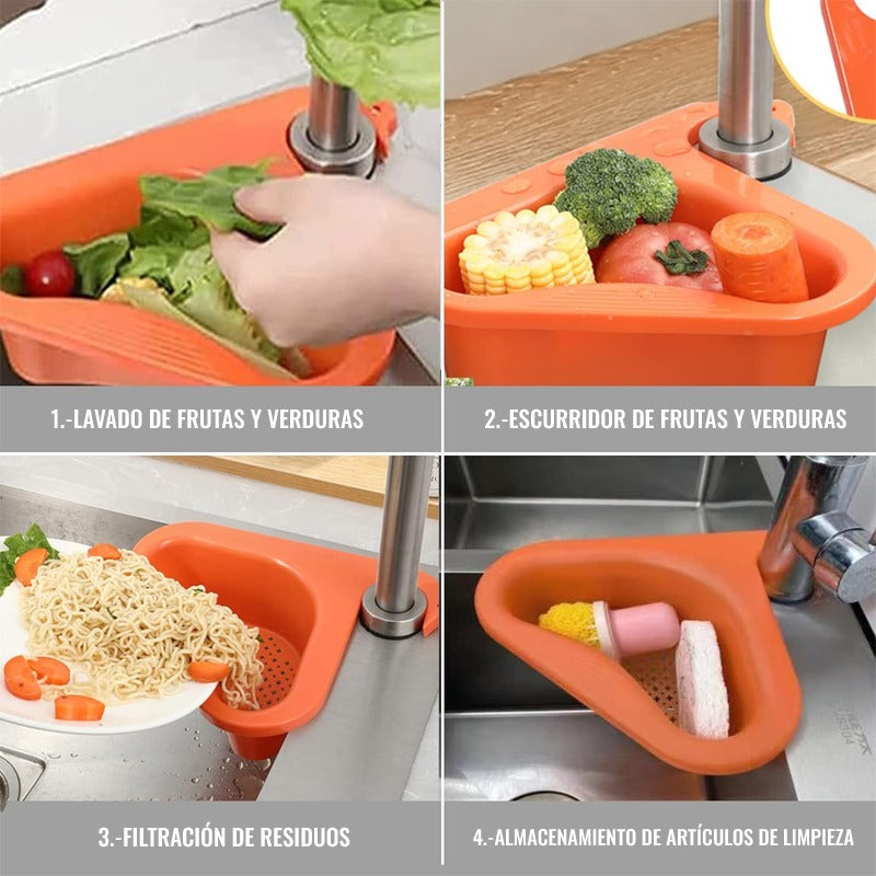 Su diseño compacto permite utilizar eficientemente el espacio en el fregadero, ayudándote a mantener la cocina ordenada y organizada.