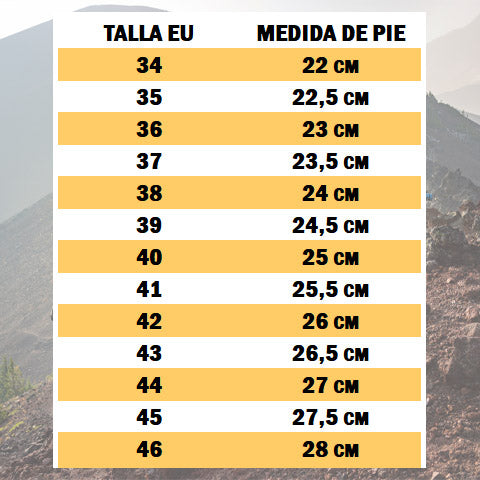Es importante que antes de comprar tengas en cuenta las medidas del producto, puedes guiarte para medir tu pie con la siguiente tabla de referencia.